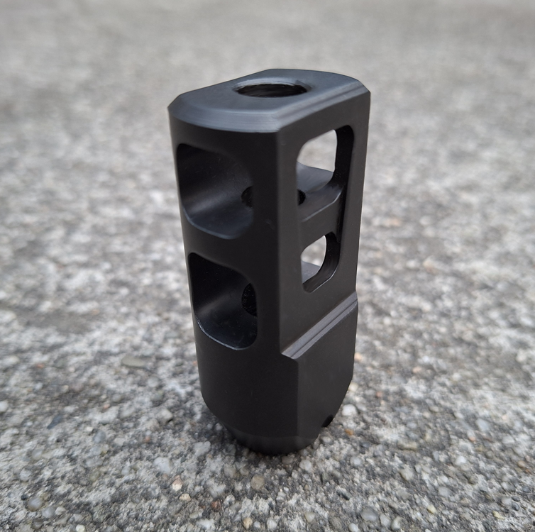 Kompletnie wykonany przez nas kompensator Czołg dla karabinka AK przeznaczony jest do redukcji odrzutu i podrzutu. Kompensator posiada otwory wylotowe ustawione względem siebie co 90 stopni w obu płaszczyznach dające lepszą kontrolę nad bronią. Sposób pozycjonowania urządzenia niweluje charakterystyczny podrzut prawo góra powodowany przez pracę zamka. Umożliwia to bardziej precyzyjne strzelanie oraz szybszy powrót do pozycji wyjściowej i oddawanie kolejnych strzałów.